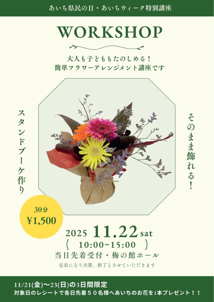 各日先着50名様に「あいちのお花」1本プレゼント!
