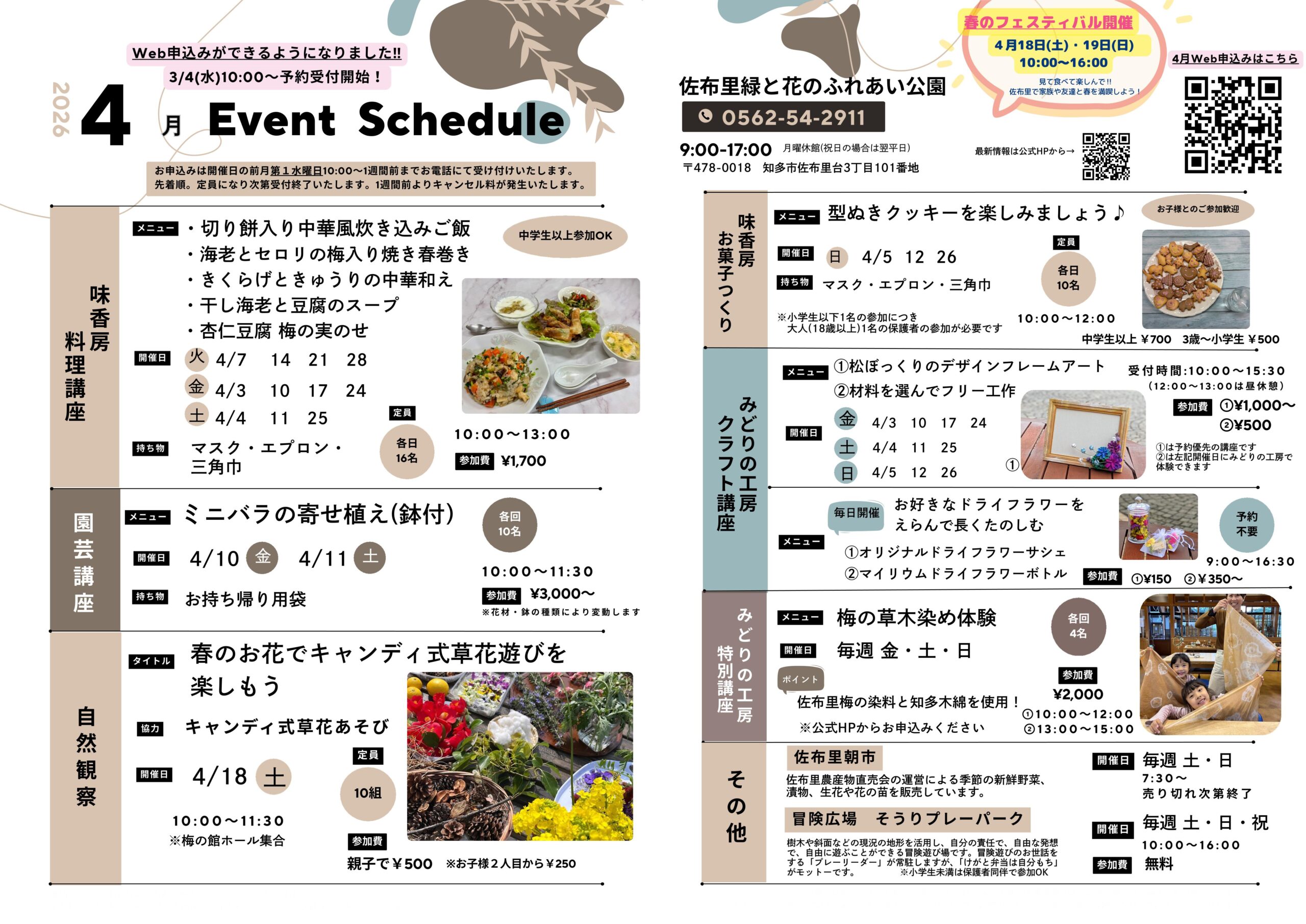 佐布里緑と花のふれあい公園ではさまざまな体験講座やイベントを開催します。