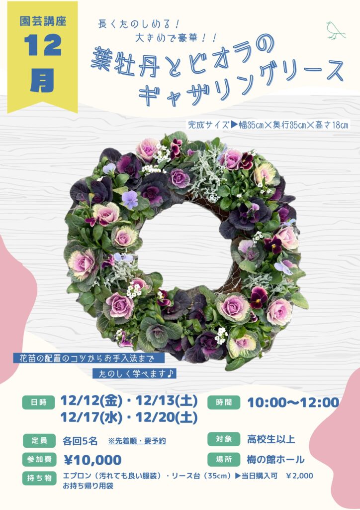 葉牡丹とビオラのギャザリングリースづくり講座を開催します。