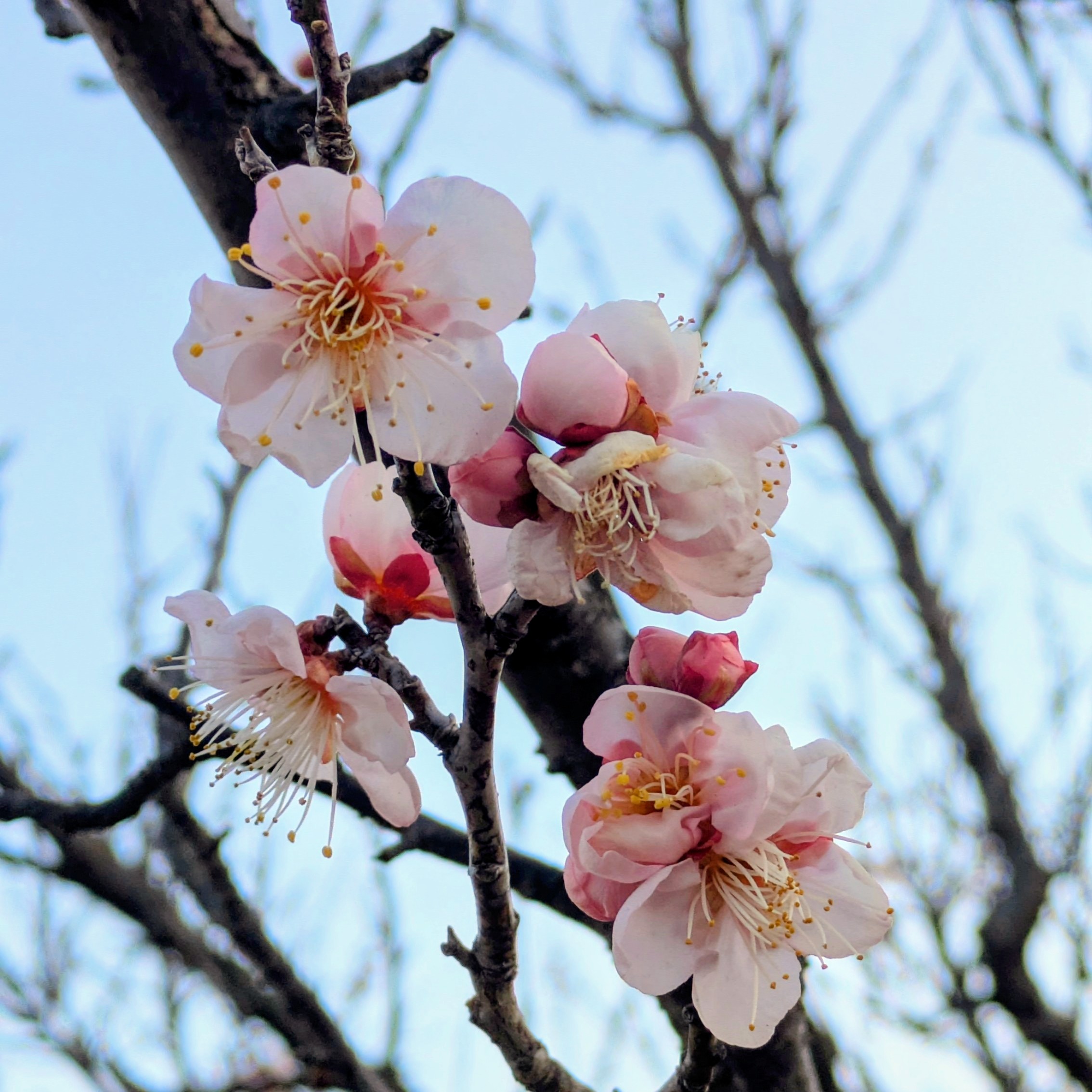 まだ寒さの厳しい時期に、淡い紅色の花をつける姿は、冬の園内にひと足早い春の訪れを感じさせてくれます。