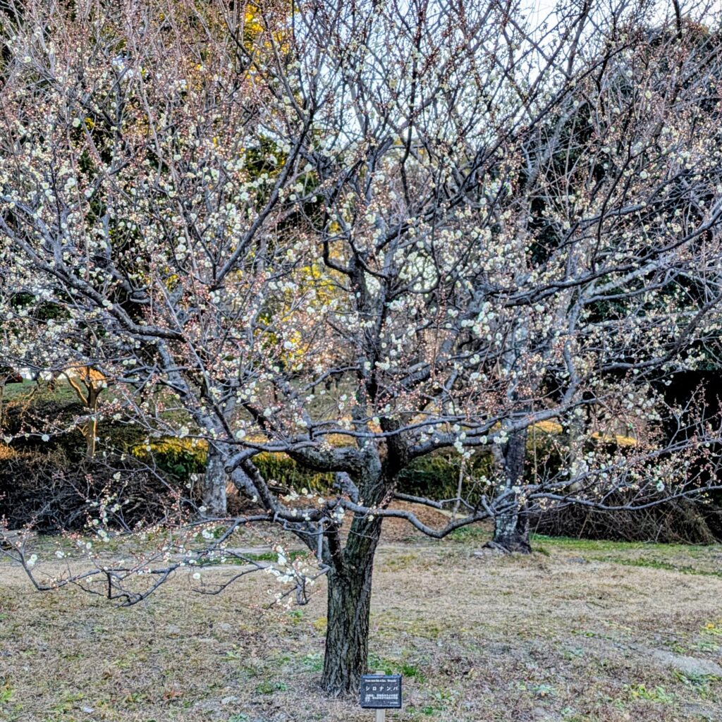 2026年1月18日、園内で梅の品種 白難波(シロナンバ) が咲き始めています。