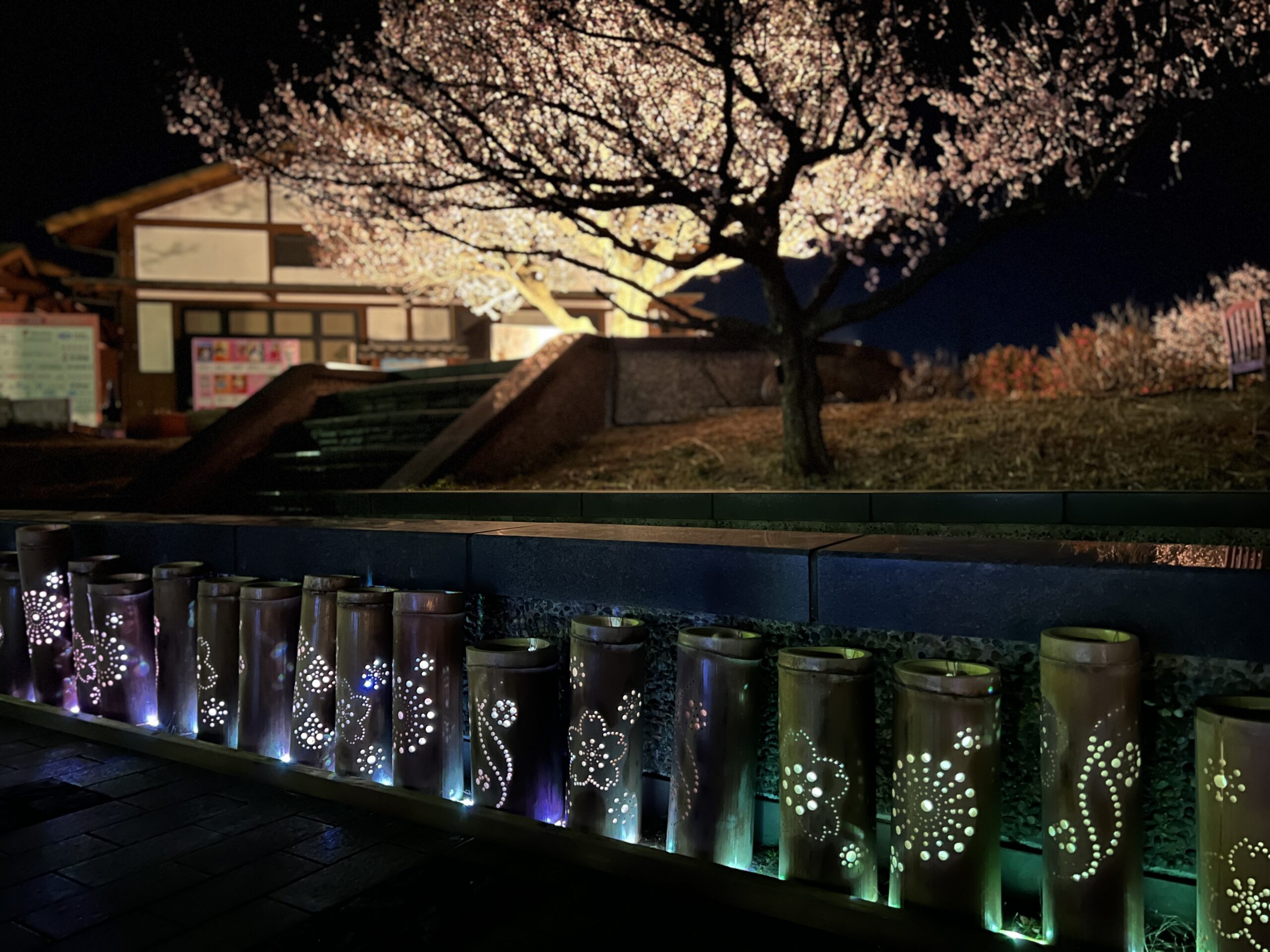 昼間とは異なる、静かで幻想的な梅の景色をお楽しみいただけます。