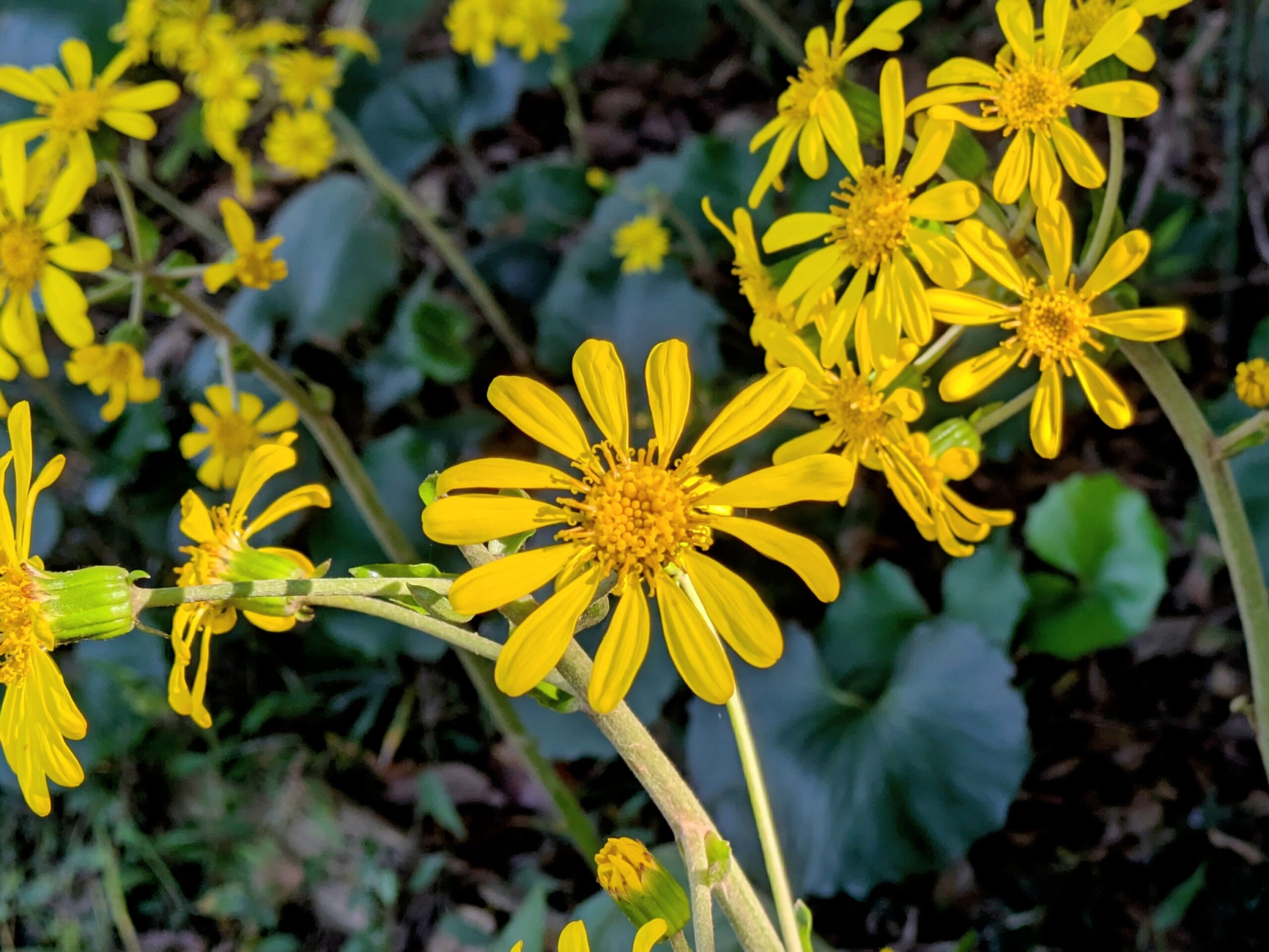 花見頃情報公園からのお知らせ 2025年11月15日 ツワブキが見ごろです 2025.11.15 鮮やかな黄色が秋を彩る ツワブキ 佐布里緑と花のふれあい公園では、黄色の鮮やかなツワブキが見ごろを迎えています。光沢のある濃い緑の葉の間に、まるで小さな太陽のような明るい黄色の花を咲かせ、晩秋の園内に温かみと彩りを添えています。小さく控えめながらも存在感のある花は、散策や写真撮影にぴったりです。 ぜひ公園で、秋の彩りとツワブキの鮮やかな花をご覧ください。